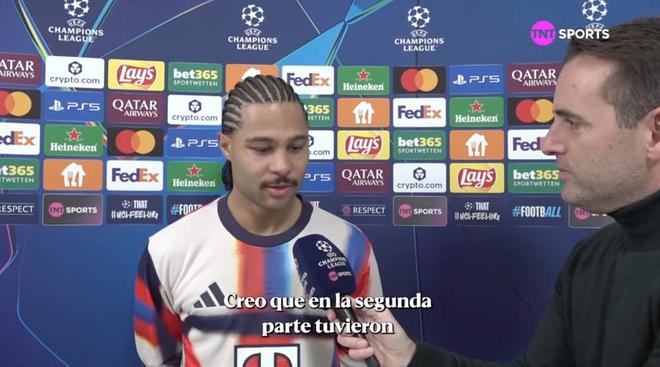 欧冠联赛阶段第6轮,拜仁主场3-1战胜葡萄牙体育,本场比赛贡献1球1助的格纳布里赛后接受了TNT体育墨西哥频道的采访。